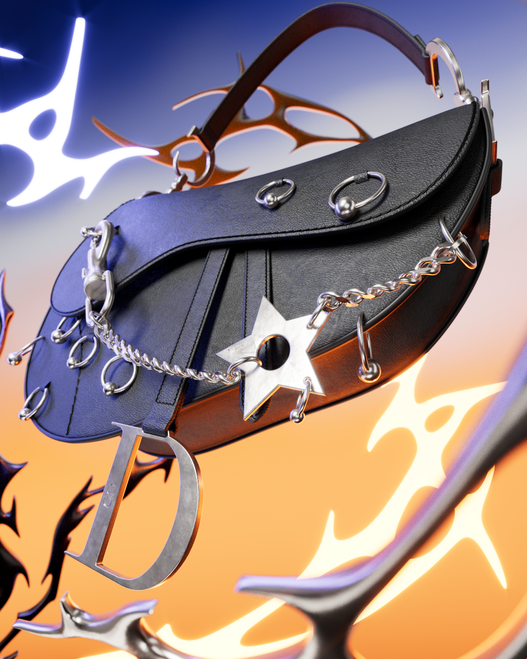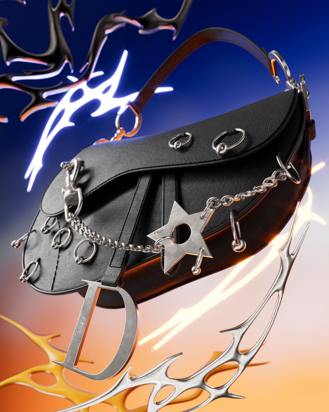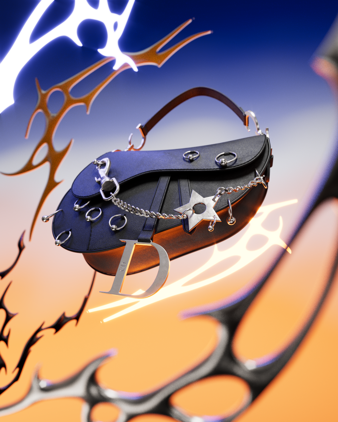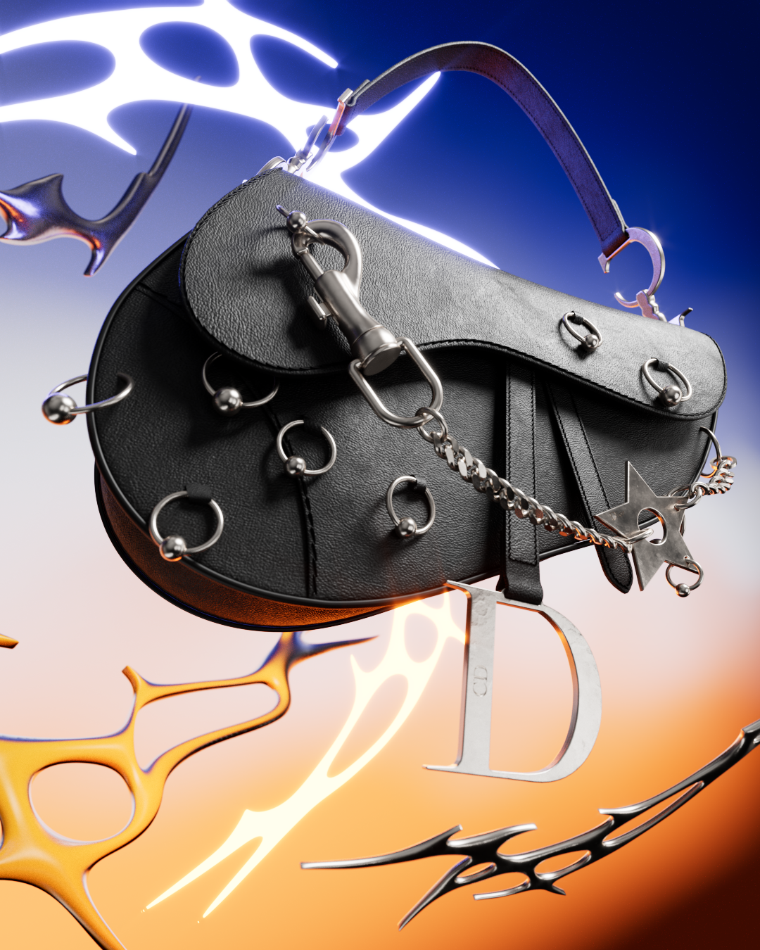 A digital reinterpretation of the Dior Saddle Bag through an industrial, subversive lens.